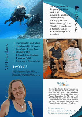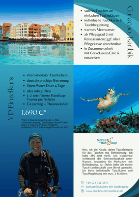 Gerne teile meine eigenen Erfahrungen mit Tauchern mit Handicap und bilde ich dich zum "best buddy" aus.