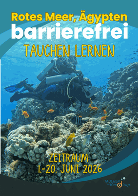 Wir tauchen gemeinsam ab, in den unterschiedlichsten Regionen dieser Welt. Natürlich auch in Deutschland, allerdings ist das Wasser hier kälter, die Sicht schlechter. Daher biete ich euch 2026 spannende Tauchkurse an, die ihr mit einer Urlaubsreise verbinden könnt. Möglich ist auch eine Kombination aus Pools-Ausbildung in Deutschland und Tauchgänge im Meer dann in der Karibik, im Atlantik oder im Roten Meer. Auf den Flyern unten seht ihr nur die groben Infos, bei Interesse schicke ich dir konkretere Angaben und weitere Möglichkeiten.